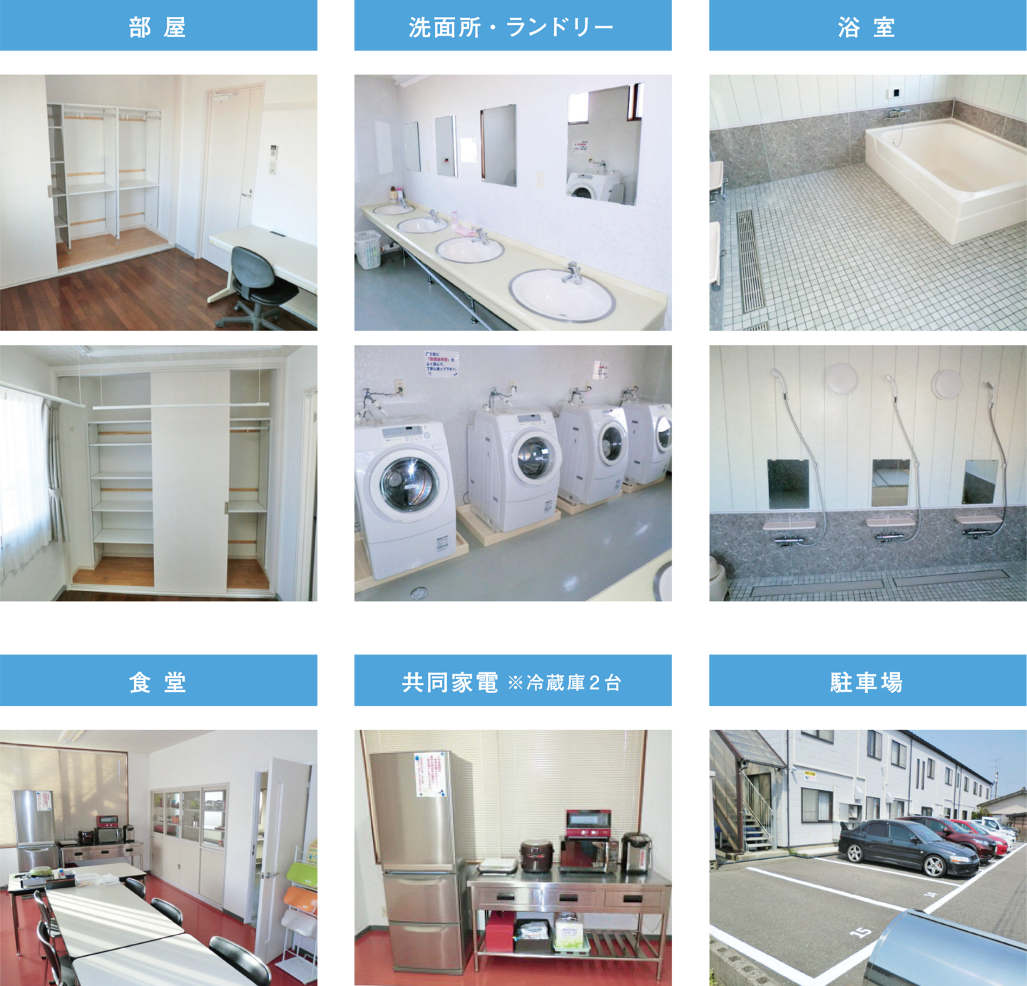 待遇・福利厚生 | 寮施設あり (家賃 : 10,000円 ※光熱費込み / Wi-Fi付 / 駐車場あり) 昇給年1回 / 賞与年2回 +α : 交通費全額支給 / 出張手当 / 時間外手当 / 資格手当 / その他諸手当等あり |
